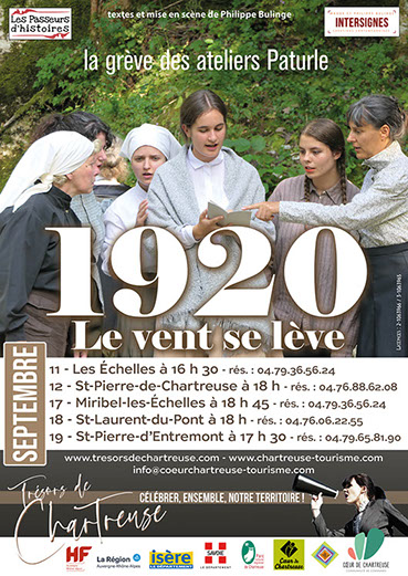 Poursuivant ses précédentes recherches documentaires sur l’histoire de la Chartreuse, l’auteur et metteur en scène Philippe Bulinge, de la Compagnie Intersignes, évoque dans la pièce 1920, le vent se lève, en association avec Les Passeurs d’Histoires, après le succès de Des Hommes derrière l’Histoire lors de la première édition des Trésors de Chartreuse, les terribles grèves qui secouèrent la France au printemps 1920 et qui coïncidèrent avec la montée en puissance des revendications féminines au sein de la société.